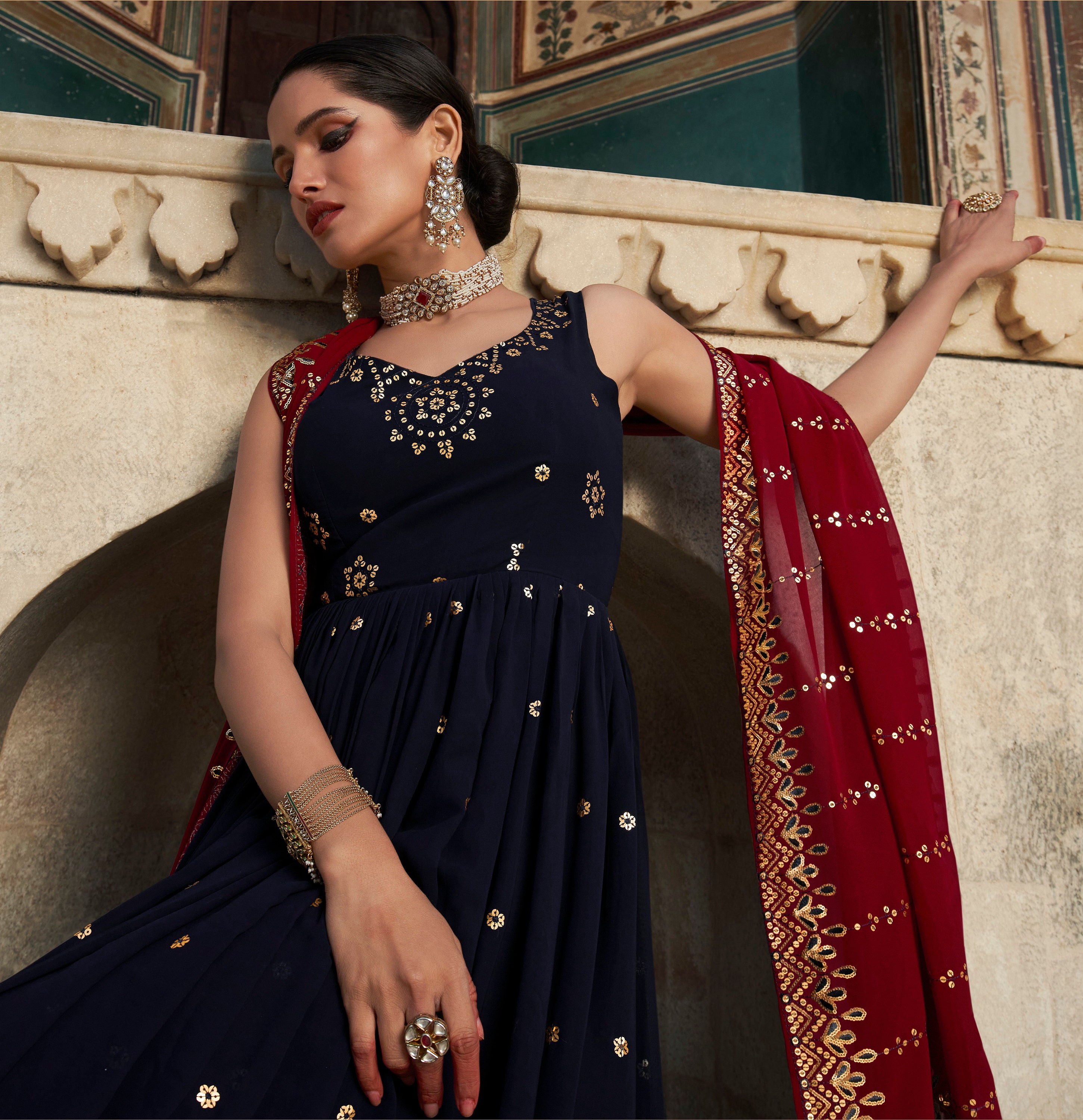 Designer Indian Gown With Thread Sequence Embroidery Work With Etsy